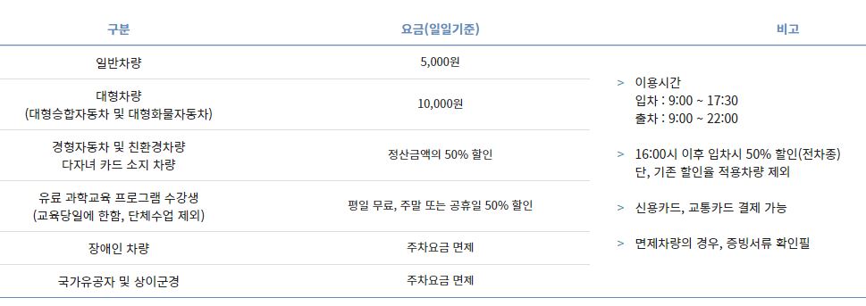 주차요금마저 부담스럽지 않은 국공립 체험관 너무 좋습니다.
