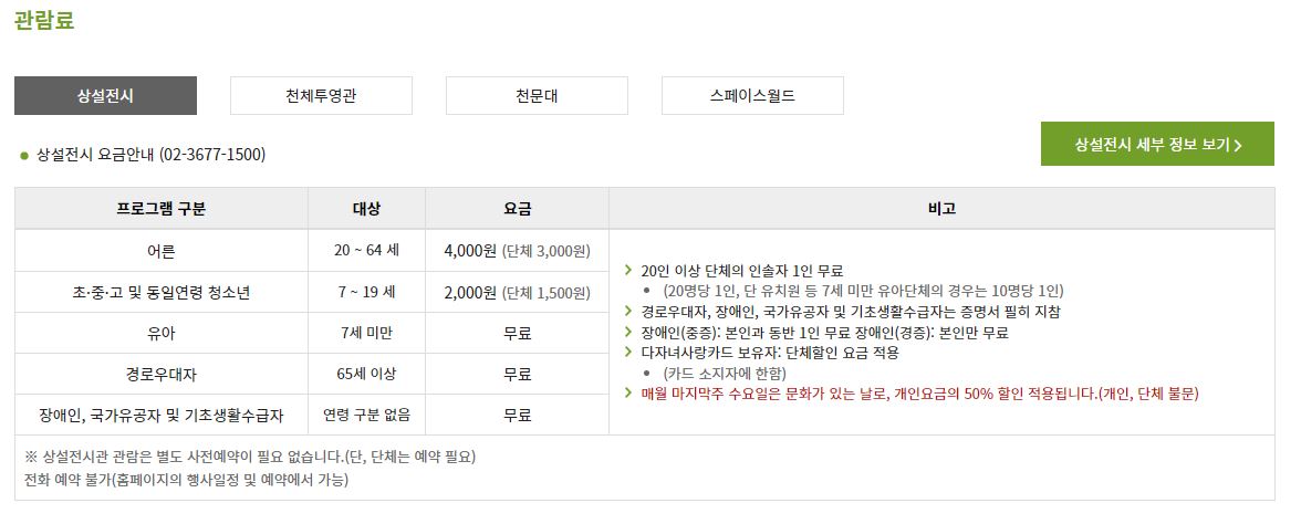 - 매월 마지막 주 수요일은 문화가 있는 날. 개인 요금의 50% 할인 적용됩니다.