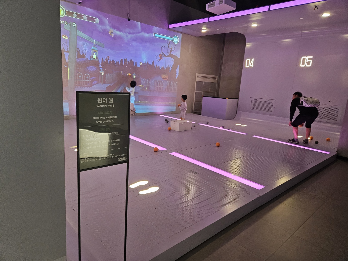 무튼 그 공간은 이렇게 화면에 악당들이 나오고 쌀주머니 같은거 던져서 맞추는 놀이로 바뀌어 있었다.