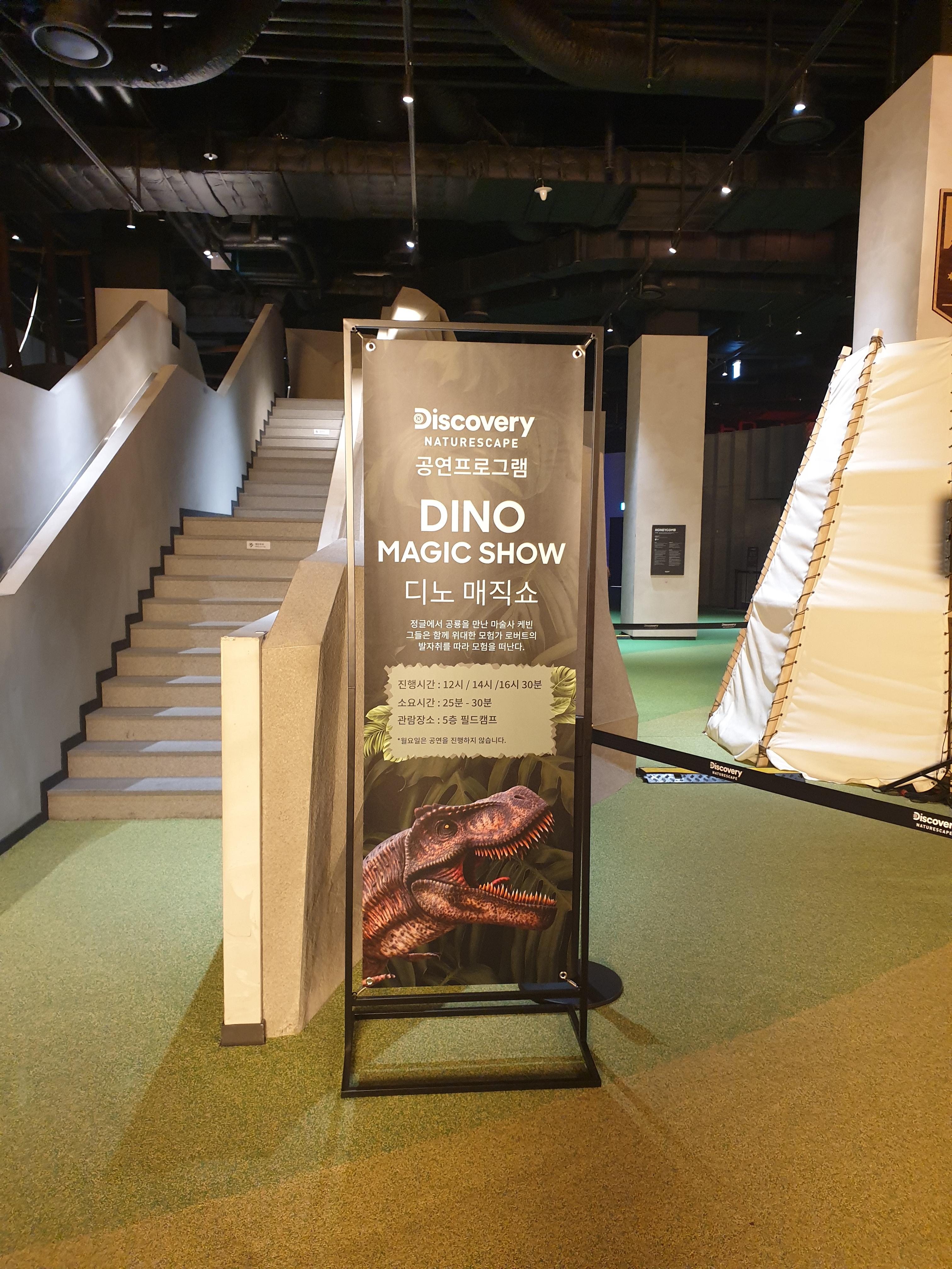 운이 좋게도 디노 매직쇼 시간과 딱 맞았습니다.