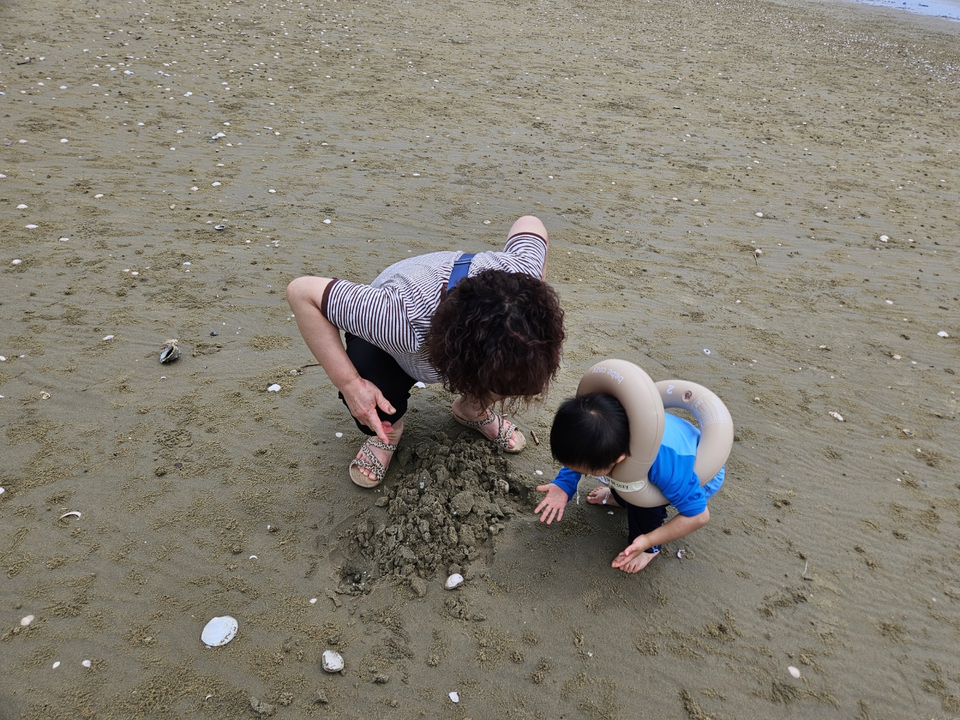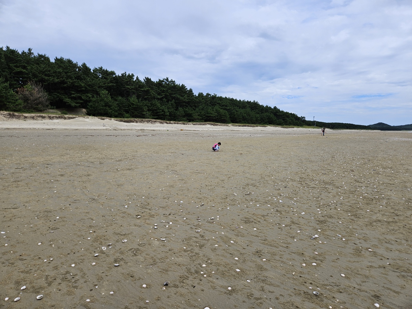 우리가족도 물빠지는 시간에 맞춰 조개잡으러 나갔으나 소질이 영 꽝이다.