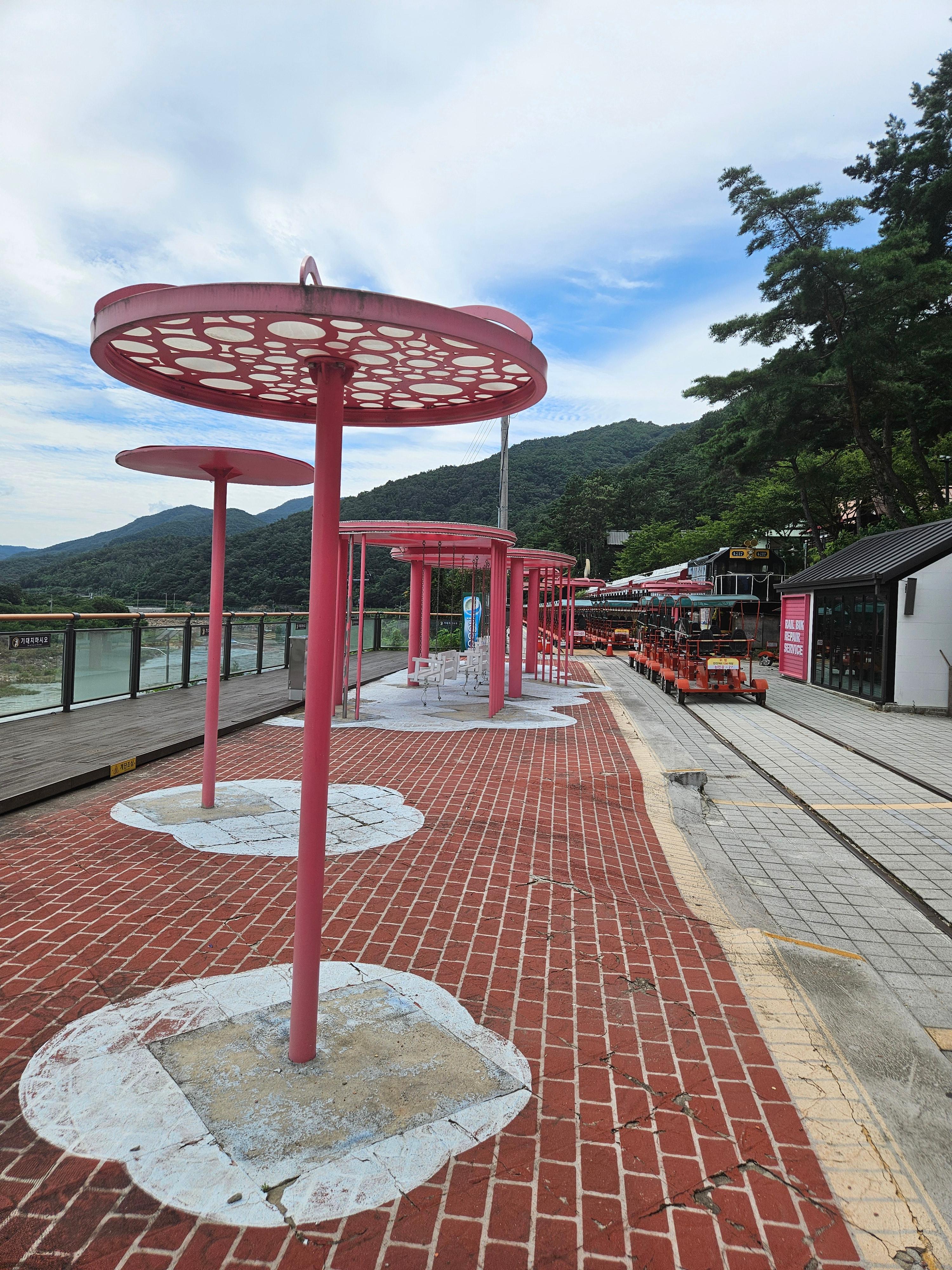 느즈막이 기차마을에가서 레일바이크와 증기기관차만 겨우 이용하고,