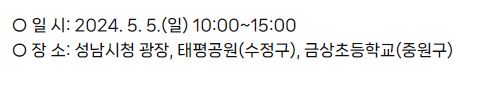 행사 장소가 성남시청 뿐만 아니라 태평공원과 금상초등학교에서도 열리나 봅니다.