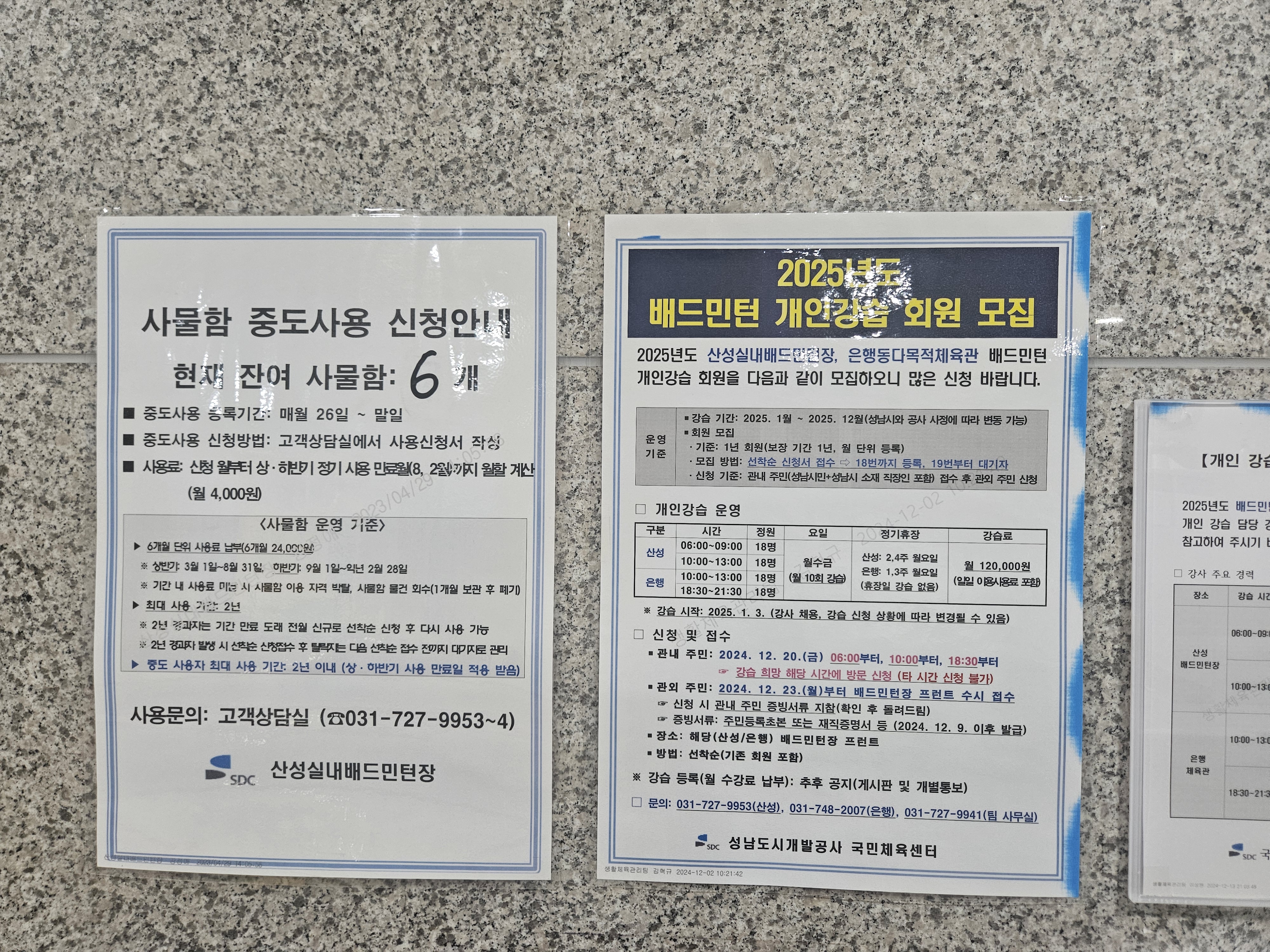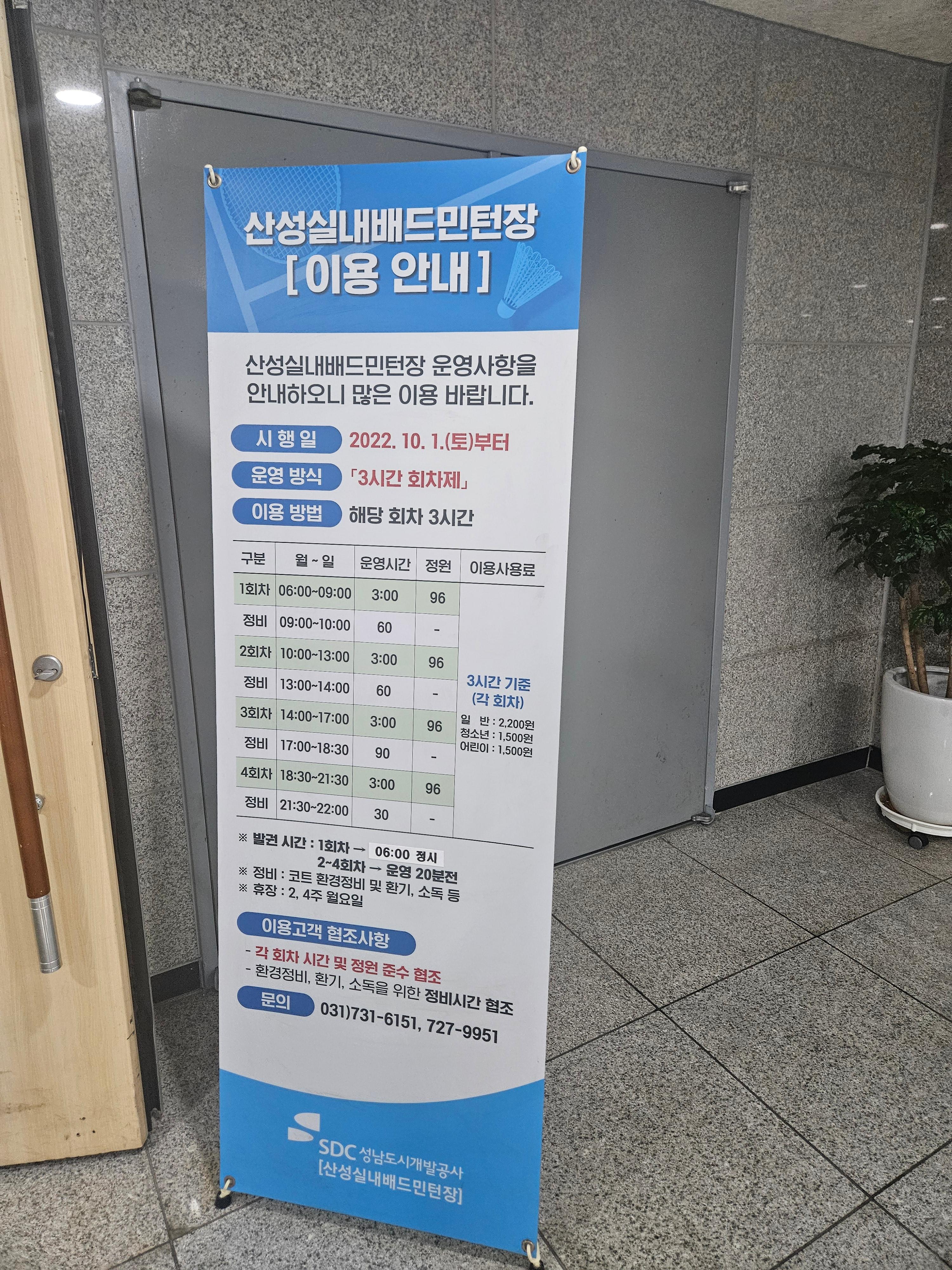 은행동다목적체육관의 경우 우리집에서 체육관까지 대중교통이 애매해서 웬만하면 산성실내배드민턴장으로 다니고 싶었기 때문