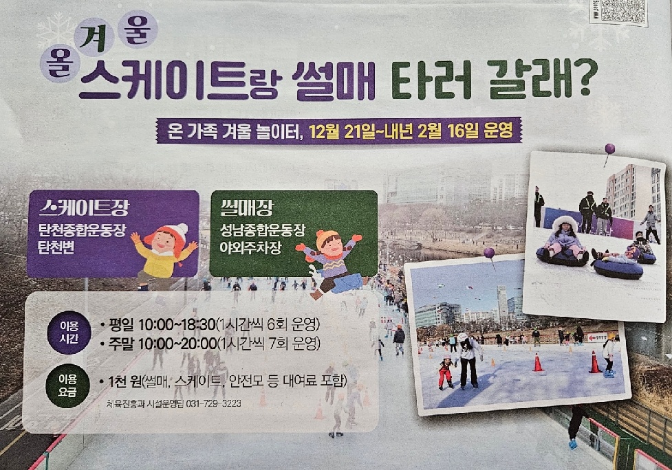 이번에는 탄천종합운동장 탄천변에 스케이트장도 시간이된다면 이용해 봐야겠습니다.