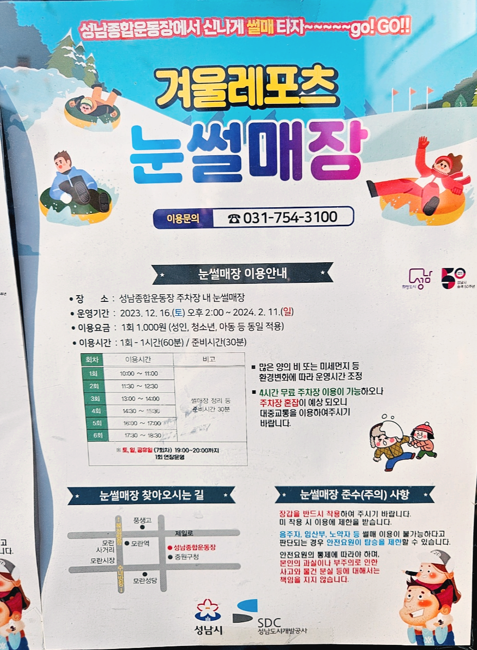 "12월16일 종합운동장 눈썰매장 개장"