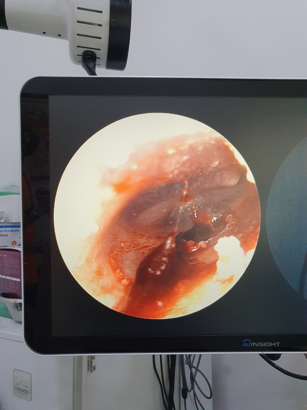 정말... 영화의 한장면처럼 귓속에서 피가 흘러 나오고 있었습니다.