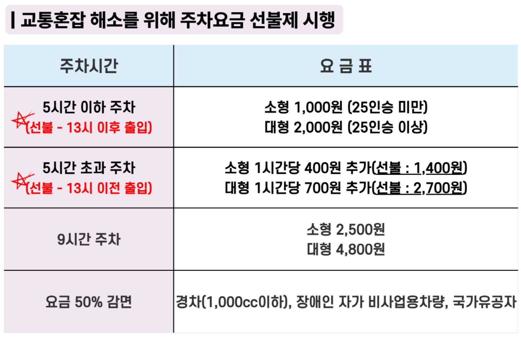 (오후 1시 이전 출입 / 승용 5시간이하 기준)