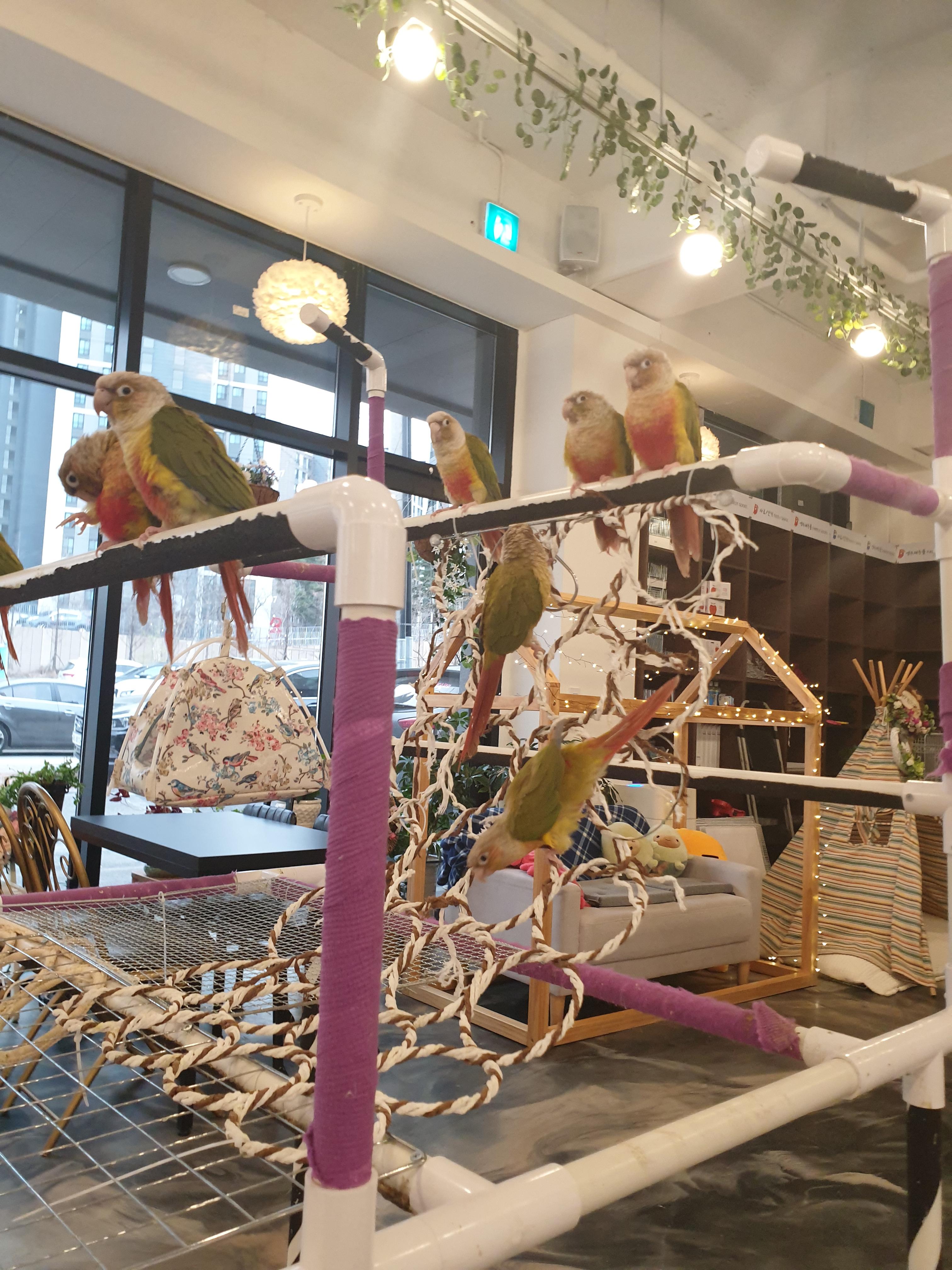헌데 아이를 낳고 아가들이 새를 참 좋아하길래 무섭지만 참고 그들에게 새를 체험시켜주기 위해 두려운 마음을 다 잡고 카페에 다녔던 것인데..........