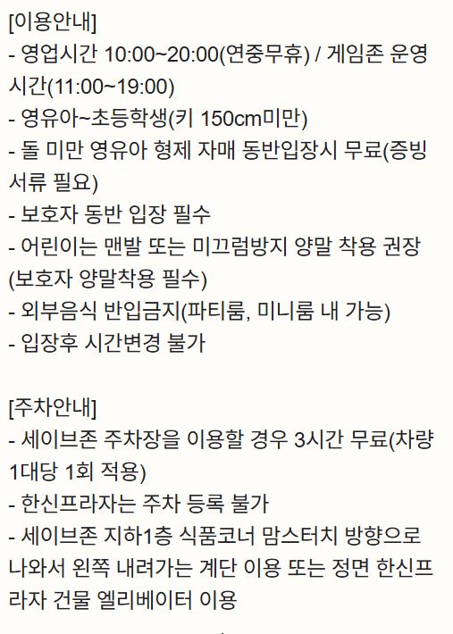 주차도 세이브존에 추차하면 3시간 무료주차 가능하다.
