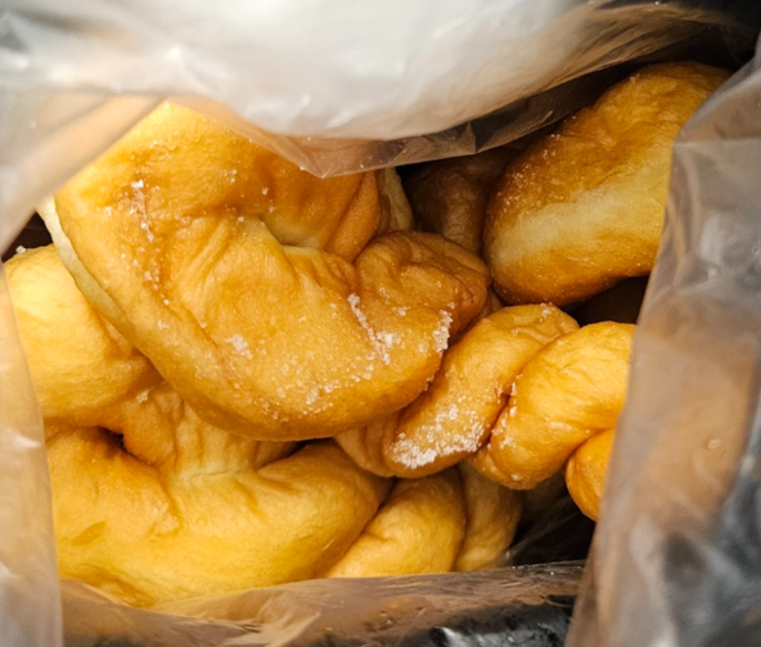 긴 줄을 기다려서 사온 꽈배기와 찹쌀도넛!!