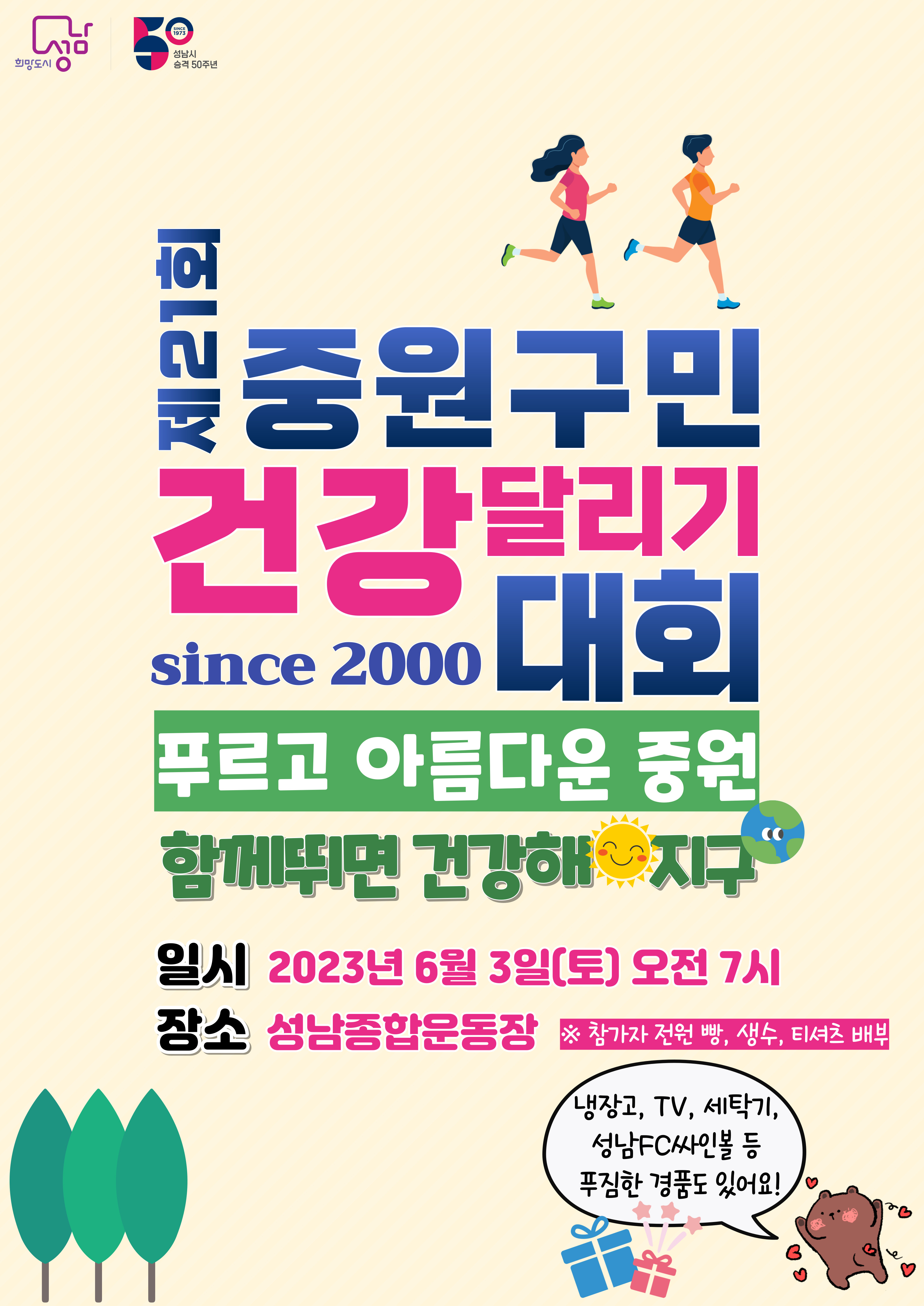 길을 가다 중원구민 건강달리기대회 현수막을 보았습니다.