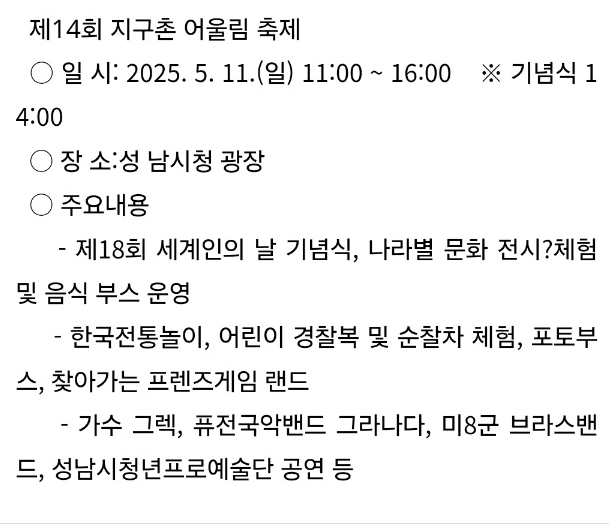 와우!!!! 5월 11일에 성남시청 광장에서 진행하는 행사였음.