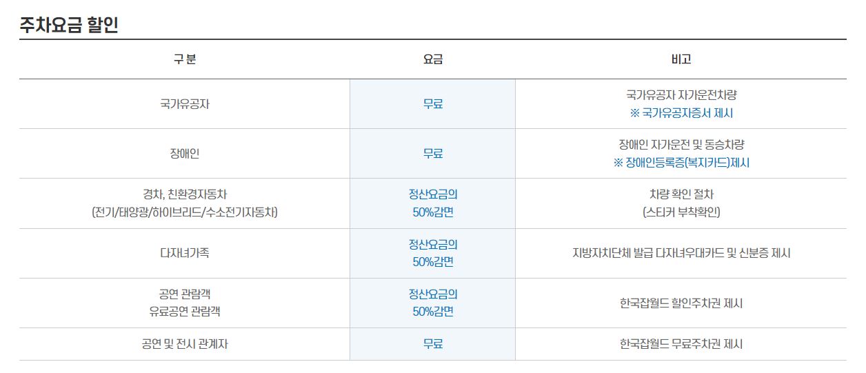 오늘은 한국잡월드 주차요금과 더불에 이런저런 팁을 적어보려 합니다.