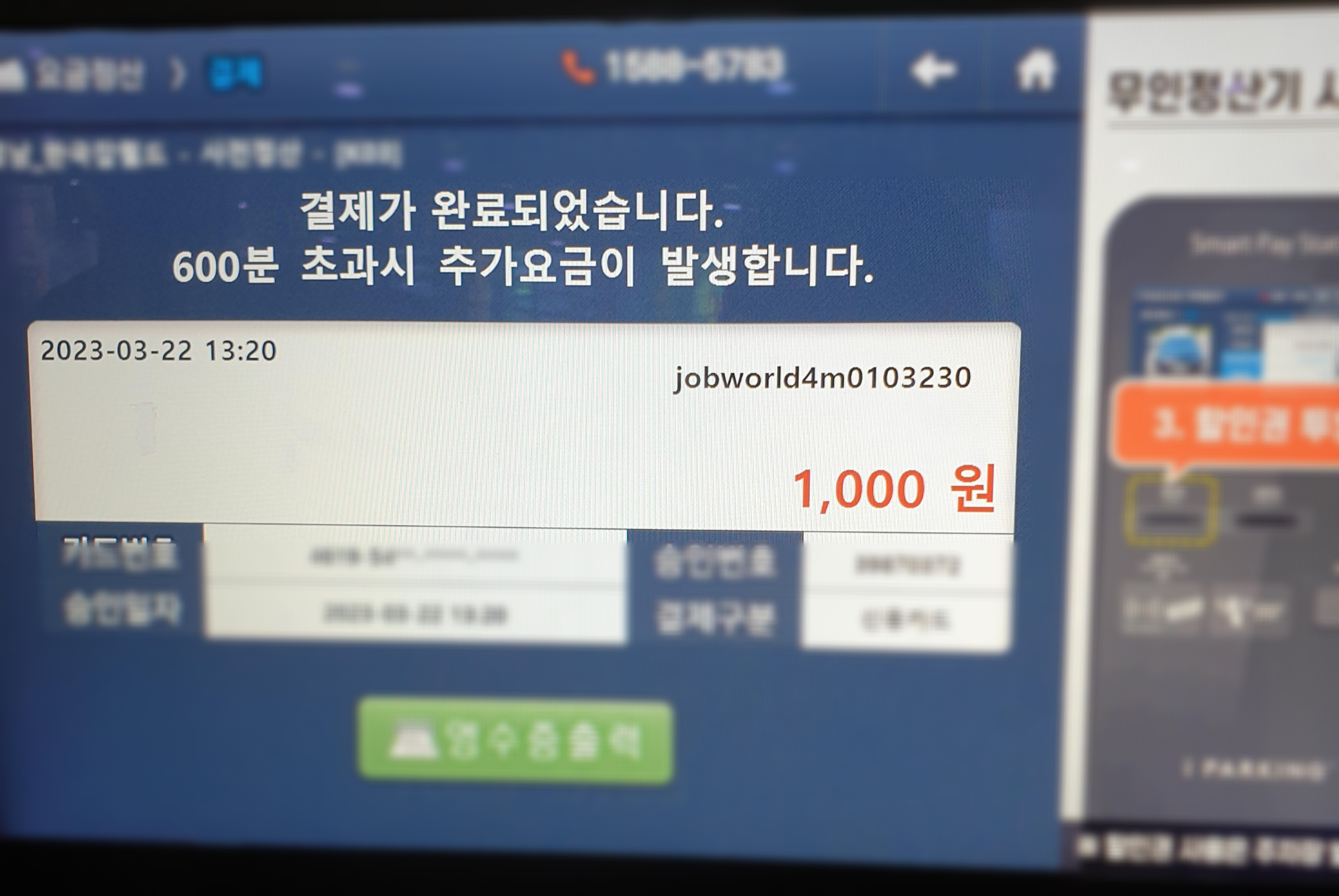 한국 잡월드 주차요금 할인.