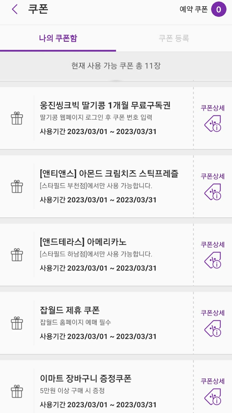 그리고 2월이 되었는데 에버랜드 정기권(연간권) 쿠폰 함에 잡월드 쿠폰이 다시 들어있는 게 아니겠어요??!!