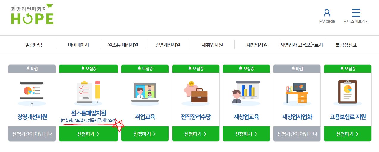 폐업지원이 완료된 상태라 새로 신청하기가 안들어가져서 화면캡쳐를 할 수 없음ㅠㅠ
