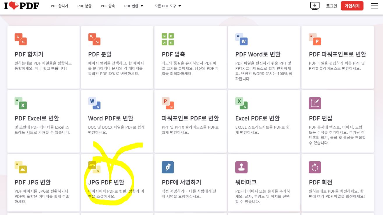 초록창에 i love pdf 쳐서 사이트 들어간 다음에 jpg pdf 변환으로 들어가서 여러장의 계약서 사진을