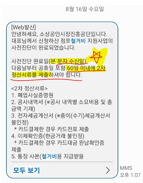 그렇게 담당자님이 다녀가시면 또 며칠 후에 문자가 옵니다.